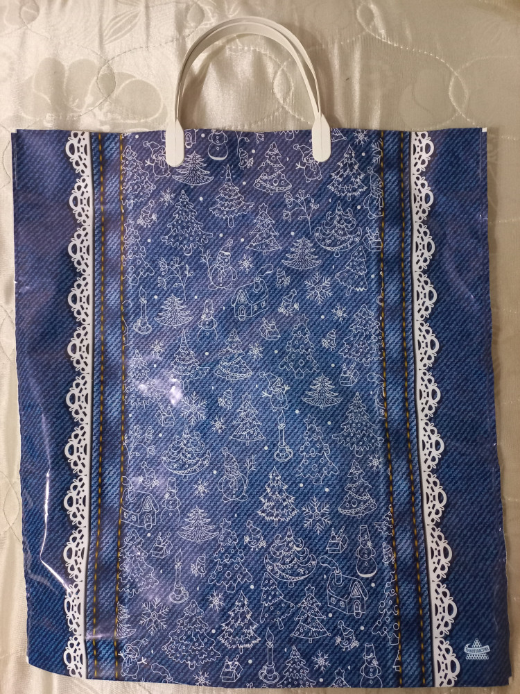 Отличный пакет, плотный с Новогодним принтом.