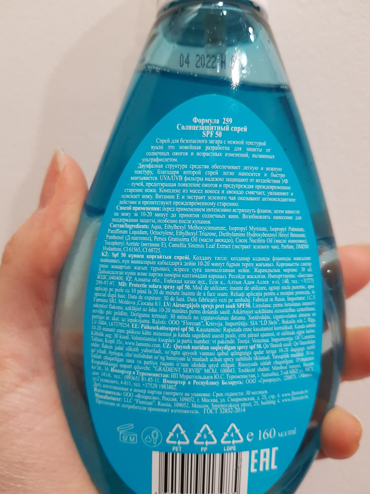 Спрей беру не в первый раз, очень нравится, на море то что нужно, хорошо защищает кожу. Спасибо продавцу.