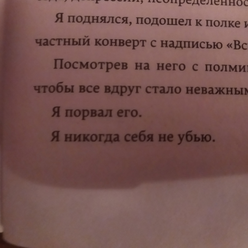 людям, которые слишком впечатлительные не посоветовал бы. оно может сильно ударить по эмоциям и собственным чувствам, особенно если они знакомы. книга мне понравилась и оставила свой след в моем сердце😭