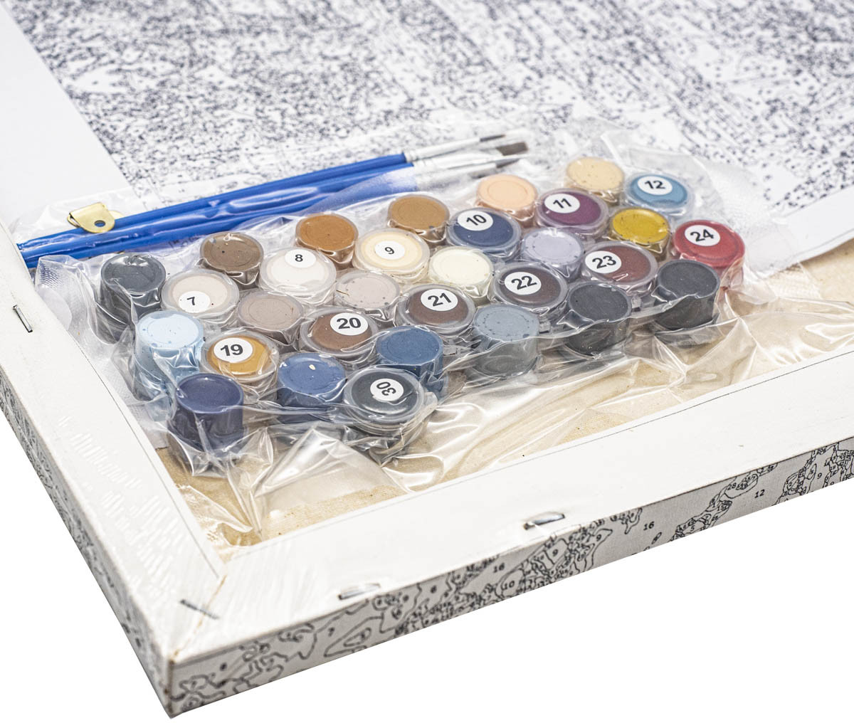 В набор входят акриловые краски — они яркие, стойкие и быстро высыхают. Краски из акрила похожи на масляные, но не содержат токсичных веществ и безопасны даже для детей. Эффект настоящей живописи завершает холст с галерейной натяжкой.