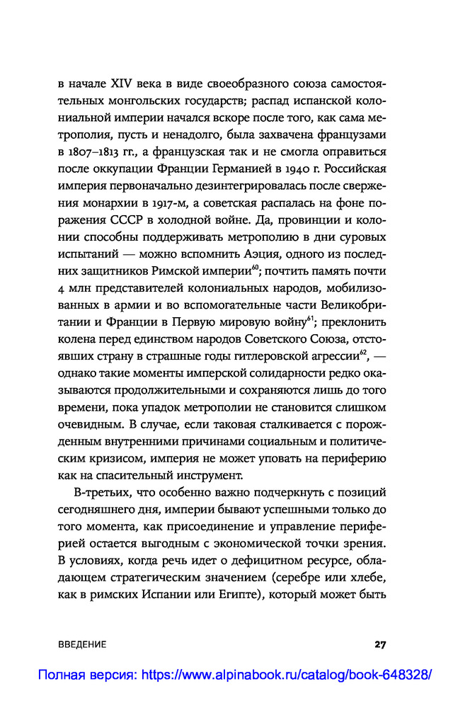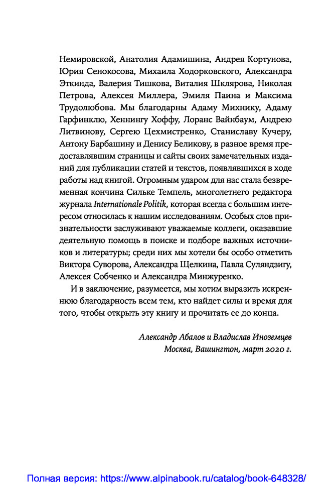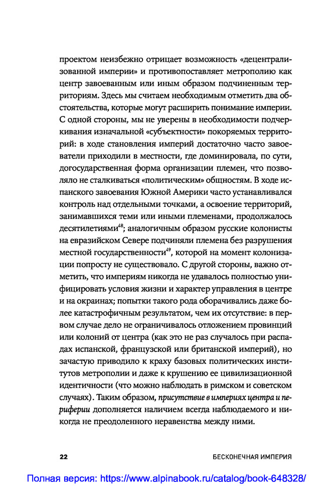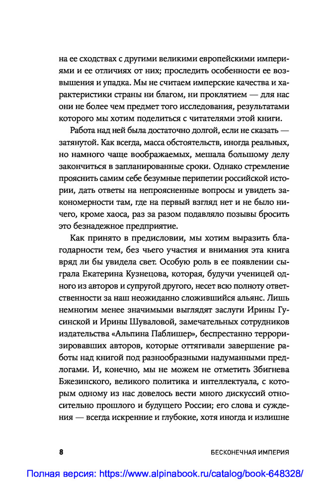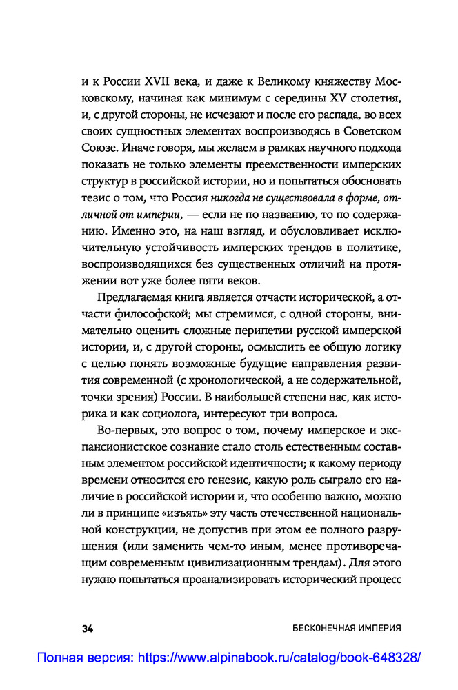 В данный момент этот товар отсутствует в продаже. Возможно, у нас найдется аналогичный или похожий товар здесь. В этой книге историк Александр Абалов и экономист и публицист Владислав Иноземцев рассматривают прошлое, настоящее и будущее нашей страны с точки зрения эволюции ее имперской сущности. По мнению авторов, Россия являлась и является бесконечной империей: с самого зарождения и до наших дней, как бы ни называлась страна, она воспроизводила и воспроизводит имперские стратегии и тактики поведения, оставаясь угрозой для соседей и подавляя ростки федерализма и самоуправления внутри самой себя.
