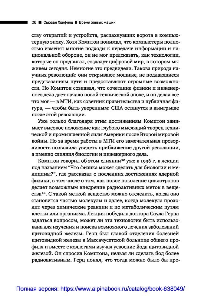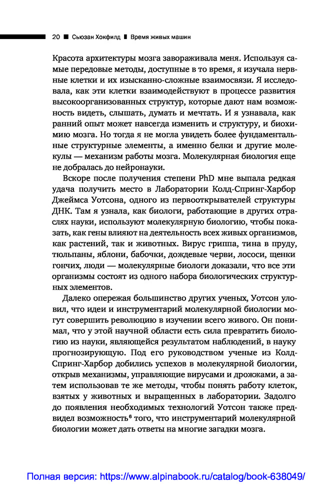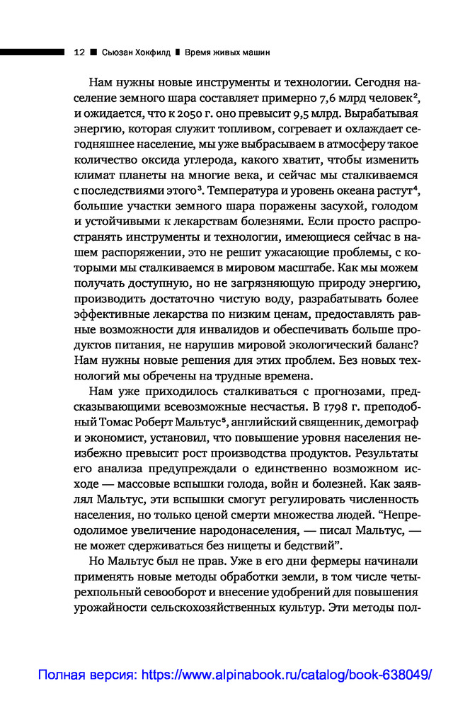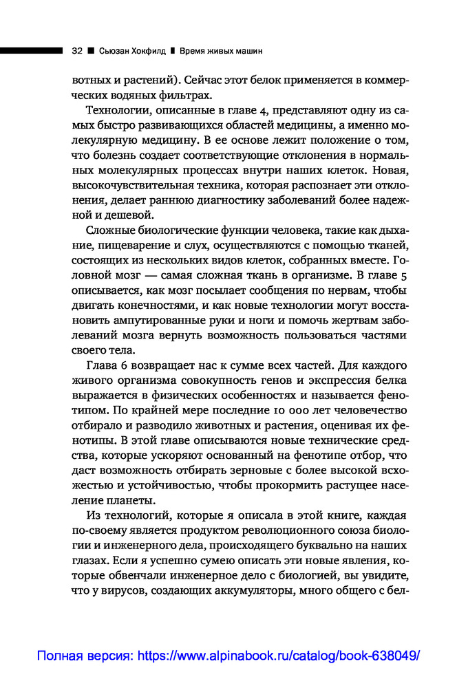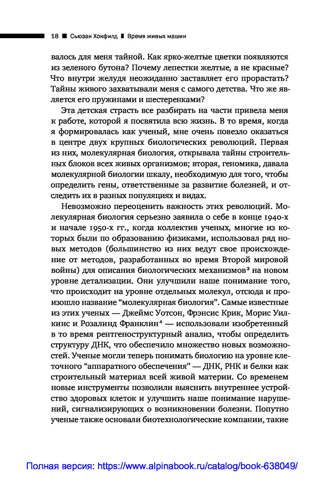 Время живых машин. Биологическая революция в технологияхВ данный момент этот товар отсутствует в продаже. Возможно, у нас найдется аналогичный или похожий товар здесь. Серия: Книги Политеха Столетие назад наука позволила инженерам создать целый ряд удивительных новых технологий, настолько изменивших наш мир, что мы уже не можем представить без них нашу жизнь. Но, как утверждает всемирно известный нейробиолог Сьюзан Хокфилд, мы находимся на пороге новой революции, когда в результате соединения открытий в области биологии с инженерным искусством появится множество поистине фантастических технологий следующего поколения. |