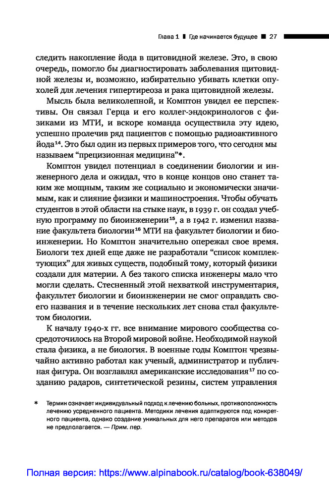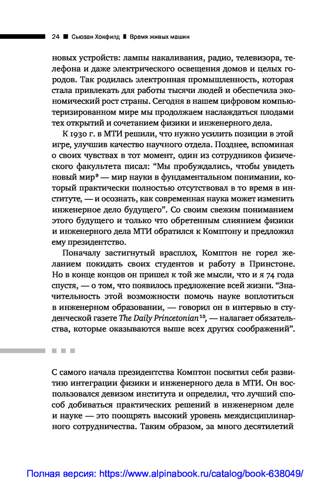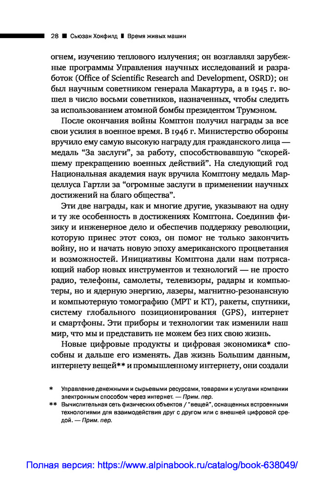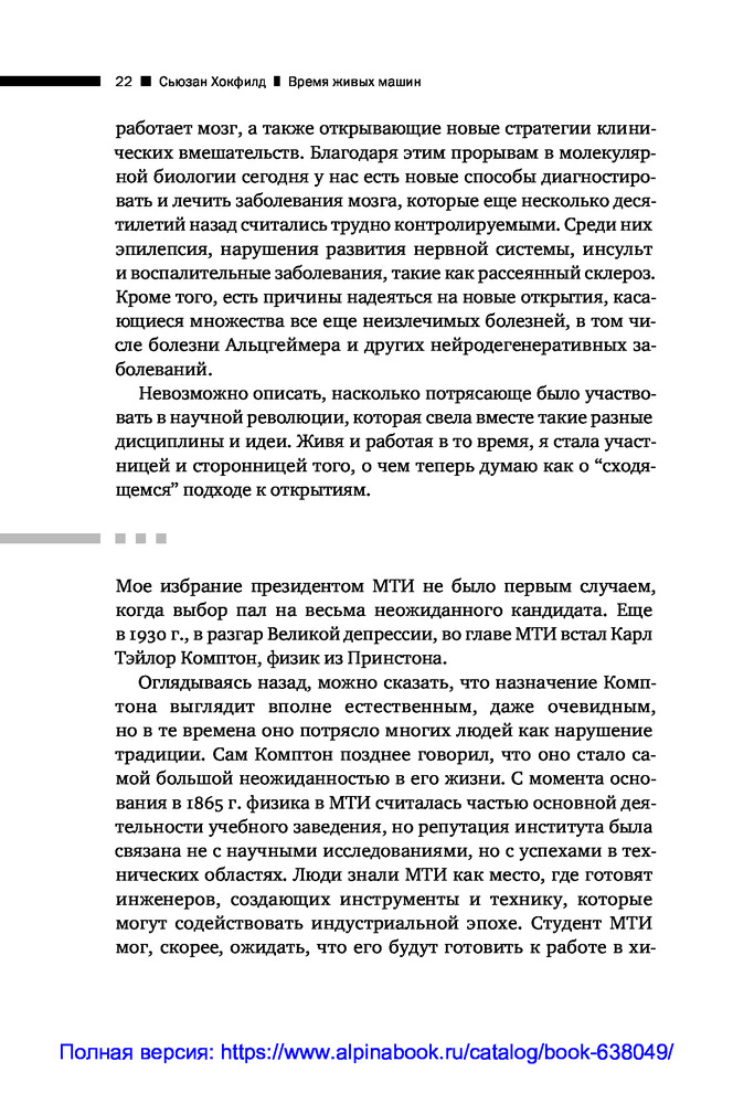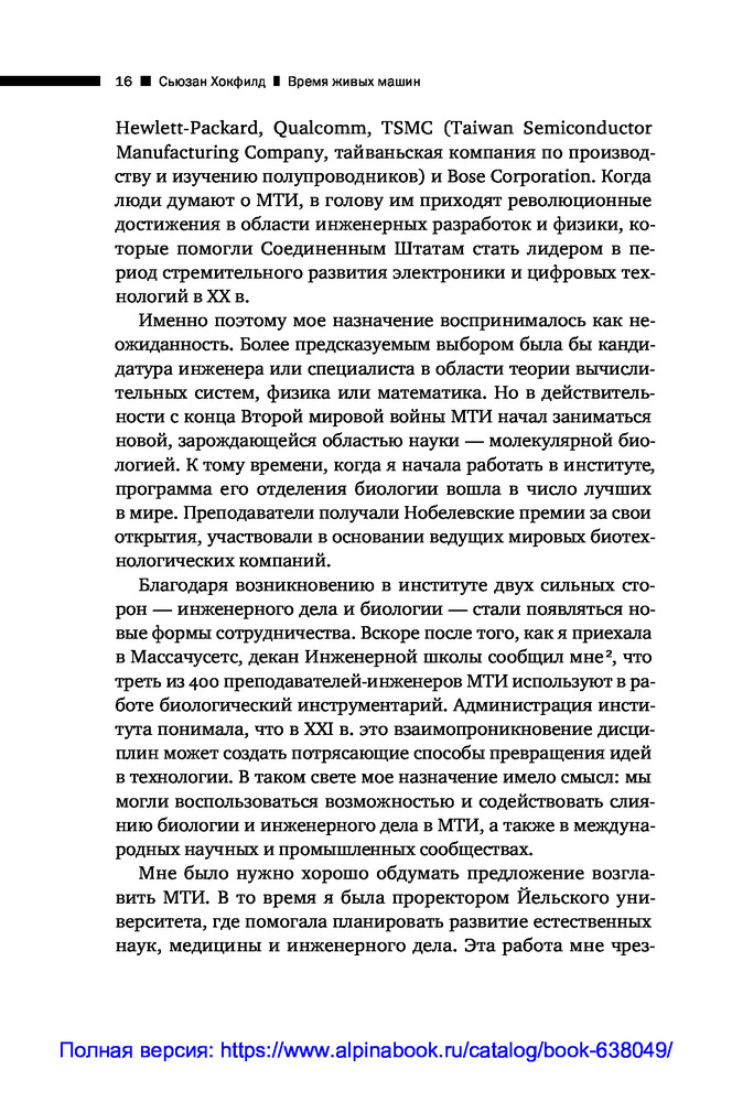 Время живых машин. Биологическая революция в технологияхВ данный момент этот товар отсутствует в продаже. Возможно, у нас найдется аналогичный или похожий товар здесь. Серия: Книги Политеха Столетие назад наука позволила инженерам создать целый ряд удивительных новых технологий, настолько изменивших наш мир, что мы уже не можем представить без них нашу жизнь. Но, как утверждает всемирно известный нейробиолог Сьюзан Хокфилд, мы находимся на пороге новой революции, когда в результате соединения открытий в области биологии с инженерным искусством появится множество поистине фантастических технологий следующего поколения. |