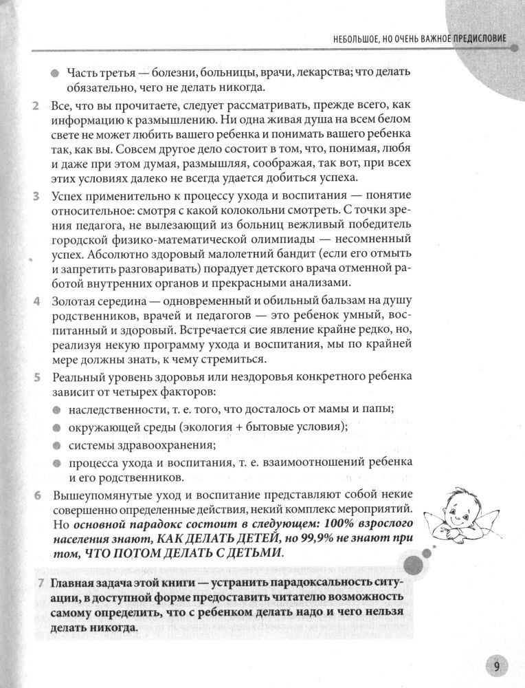 Хорошая книга, написано о многом, начиная от беременности и дальше, немного пожалела, что узнала о ней так поздно, когда дочке уже 3, а сыну год, охарактеризованы самые распространенные болезни у деток и их лечение. Польза детсада и многое др. Интересная книга