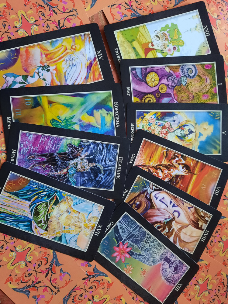 Своеобразная и необычная колода. Неординарный тандем самобытного взгляда автора и таланта художницы. Тем эта колода и интереснее, так как отличается от многих других. В книге раскрыта концепция каждой карты. Качество обычное для Гранд-Фаир. Доставка и обслуживание как всегда безупречные Благодарю.