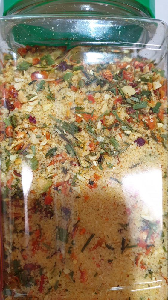 Какая классная соль! Вкус отменный. Идеальное сочетание в салаты, да и в суп шикарно. Курица с такой солью просто замечательно идет. Банка удобная, прямоугольная, сразу хорошо вписывается в интерьер. Широкое горлышко удобно.