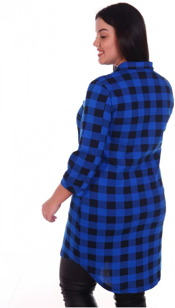 Туники из кулирки свободно облегают фигуру, позволяют коже дышать, не прилипают к телу и не требуют особого ухода. Туника «Аделаида» выполнена из хлопковой ткани кулирка. Туника в клетку с отложным воротником. На полочке кокетка с разрезом. Рукав три четверти с манжетой, оформление низа изделия фигурное.