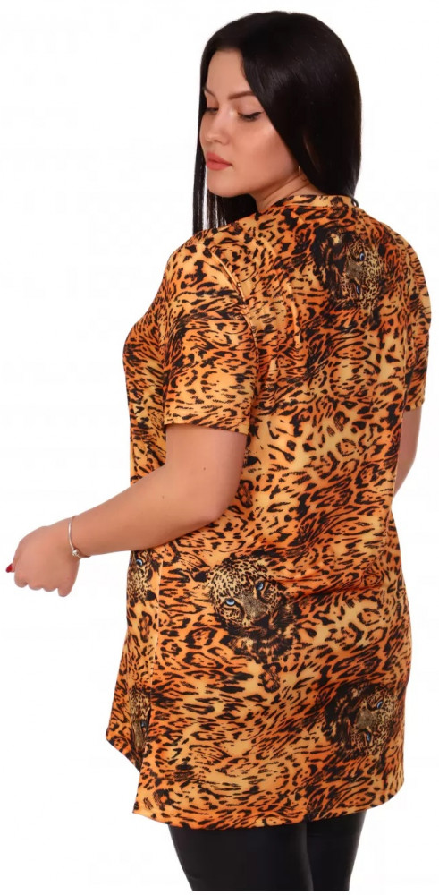 На мой объем груди 112 см взяла 52 размер, она даже чуть свободная, сидит комфортно, но у меня бедра не широкие. Очень симпатичная, легкая туника на лето, с коричневыми легинсами отлично смотрится.