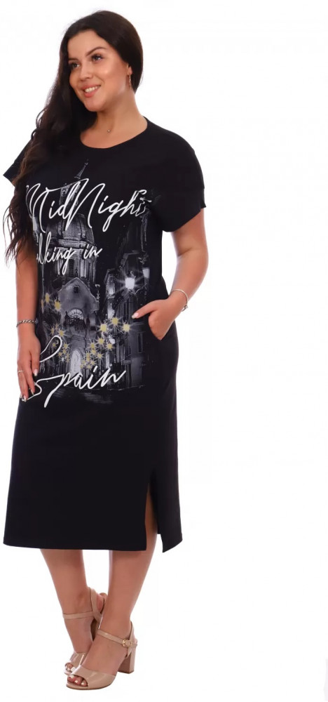 удобное, комфортное платье. Плотный трикотаж не растягивается. Хорошо, что есть достаточно емкие боковые карманы. При заказе надо смотреть мерки по себе, ношу 54, купила 56 и очень довольна, что не купила на размер меньше.
