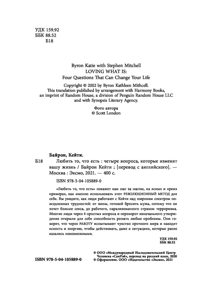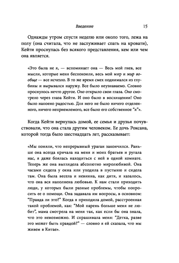 Вообще Байрон Кейти интересно пишет. Глубокий смысл в её книгах. Читать конечно легко, но в практике не всем легко