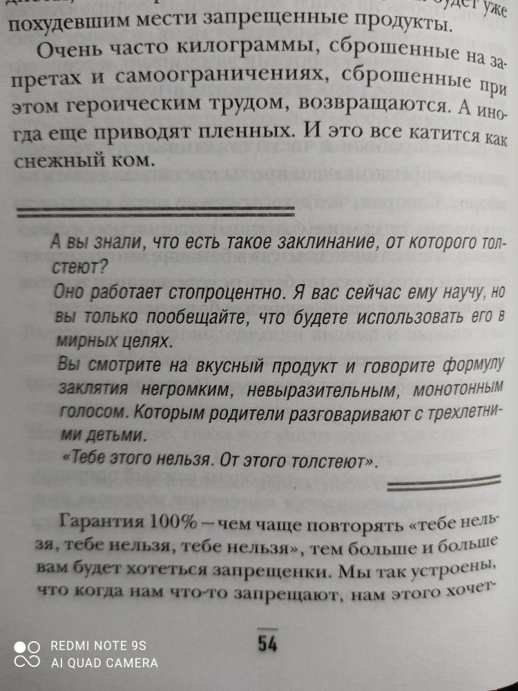 Это лучшее что я когда-нибудь прочитала о правильном питании. на каждой странице узнаешь себя. По этому ощущение что доктор с тобой на одной волне. все очень доступно и понятно. бешеная мотивация. не похудеет только тот кто не умеет читать.