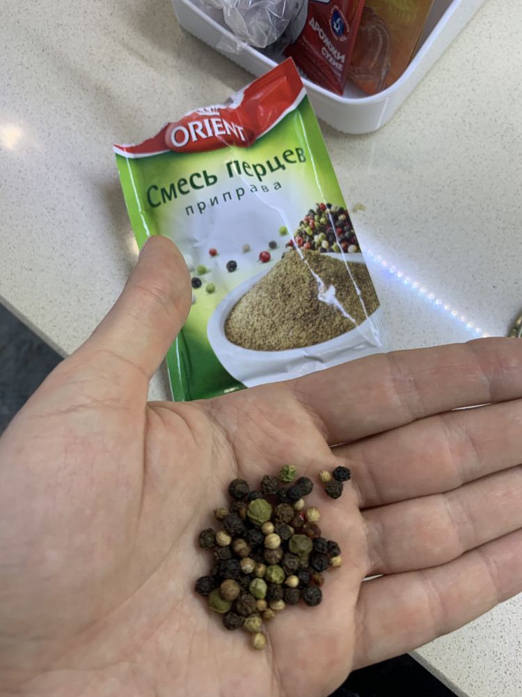 Хороший состав, разные виды перца. Для супов подходят идеально. Покупаю не первый раз и буду продолжать покупать. Аромат у супчика с несколькими разными горошинками потрясающий
