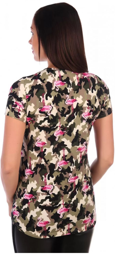 Футболка хорошего качества, красивой расцветки. Размер соответствует, но на полную грудь маловата, всё же надо брать на размер больше.