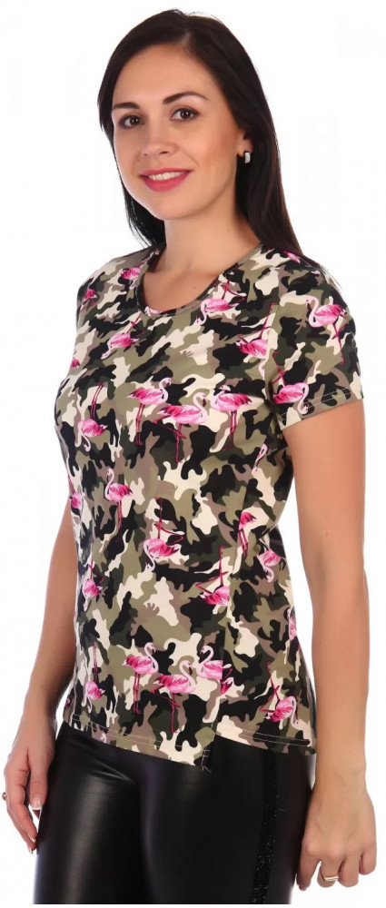 Футболка хорошего качества, красивой расцветки. Размер соответствует, но на полную грудь маловата, всё же надо брать на размер больше.