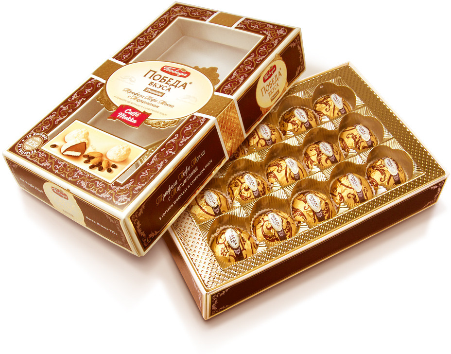 Победа Трюфели с марципаном в горьком шоколаде и маскарпоне «Кофе Мокка»В данный момент этот товар отсутствует в продаже. Возможно, у нас найдется аналогичный или похожий товар здесь. Серия: Победа вкуса Премиальные трюфели с марципаном — настоящая победа творческой мысли кондитеров из кулинарной лаборатории «Победы», воплощенная в уникальном сочетании вкусов. В основе каждой конфеты нежнейшее сливочно-шоколадное «сердце» на мягкой «подушке» из марципана — тертого миндального ореха. |