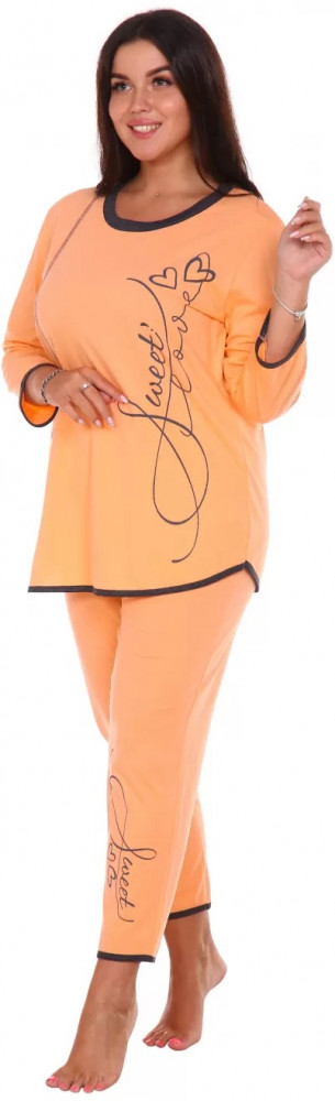 Удобный женский комплект для сна и отдыха. Представляем Вам пижаму, состоящую из кофты с рукавом 3/4 и капри. Кофта с карманом и рельефом-отстрочкой. Горловина, низ рукавов и изделия обработаны окантовкой контрастного цвета. Украшением служит принт, расположенный по диагонали.