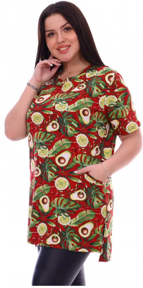 туника ниже бедер, на 62 размер взяла 60 и вполне подошло, но еще не стирала . 100% хлопок, с брюками, легинсами и велосипедками подходит отлично!!!