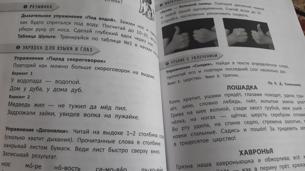 Скорочтение: упражнения по развитию навыкаВ данный момент этот товар отсутствует в продаже. Возможно, у нас найдется аналогичный или похожий товар здесь. Серия: Эффективный тренажёр Тетрадь-тренажёр опытного нейропсихолога, руководителя школы интеллектуального развития «Супермозг» Гюзели Абдуловой поможет сформировать фундамент для успешного обучения — навык эффективного чтения (скорочтения). Всего за 60 занятий ребёнок освоит самые важные приёмы, которые позволят ему читать быстрее и понимать больше! Издания серии «Эффективный тренажёр в одной тетради» превратят скучное «натаскивание», убивающее желание учиться, в увлекательные и полезные занятия. В основе каждого тренажёра заложены уникальные авторские методики, доказавшие свою эффективность. Занимайтесь с пользой и удовольствием! |