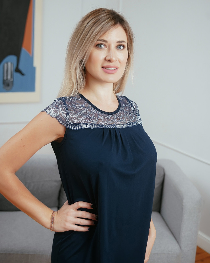 Мне понравилась сорочка. Размер подошел, хотя по таблице у меня все параметры находятся в разных размерах, размер определяла на свой риск. Качество хорошее, приятный материал. Но рисунок кружева в реальности другой. На фото по кружеву сверху идут голубые цветы, в реальности их нет, просто темносиние кружева. Это не очень приятный момент( все таки покупаешь то, что видишь на фото), но да ладно.