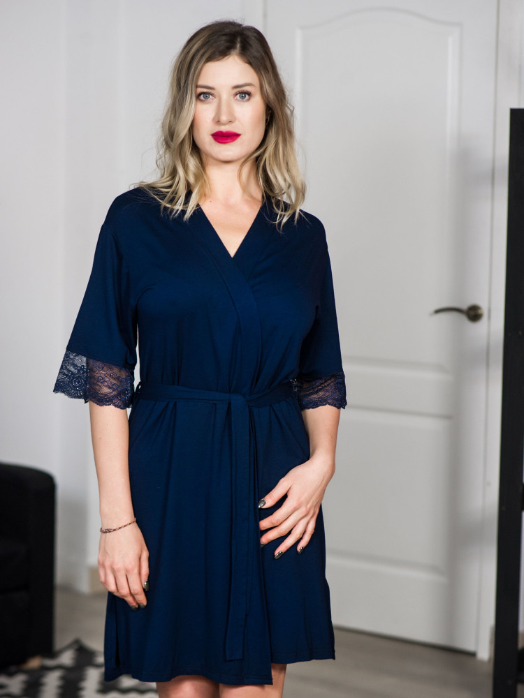 Красивый халат. Материал очень приятен к телу. Качество пошива и гипюра на рукавах хорошее. Если хотите чтобы был посвободнее, берите на размер больше своего. Я ношу 44 рр, взяла 46, хорошо сидит.