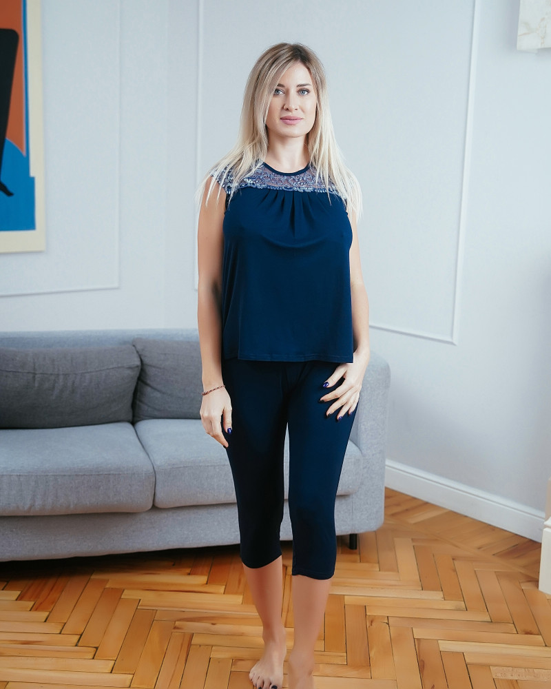 Футболка и брюки-бриджи свободного кроя. Очень удобная одежда для дома. Купила синего цвета.