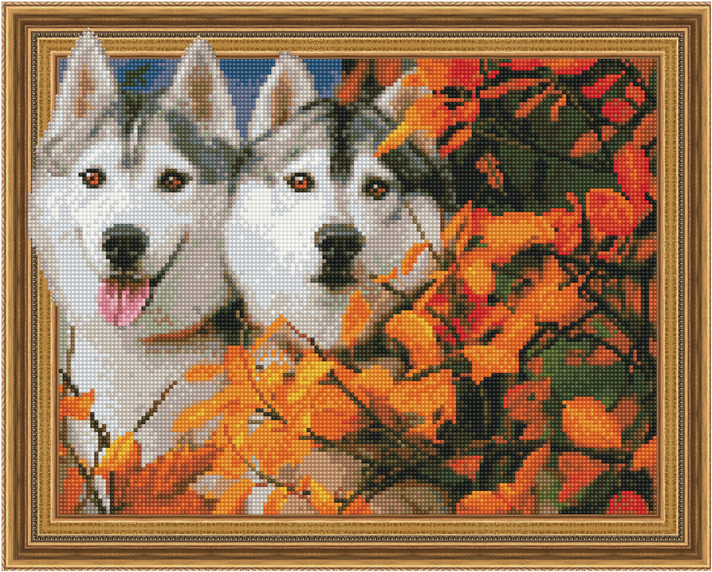 С помощью набора для творчества на холсте можно выложить картину 3D с изображением двух хаски.