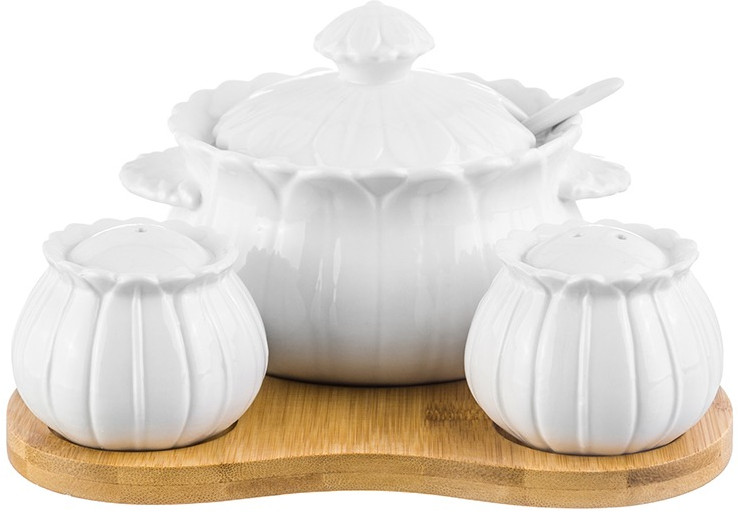 💳 Оплатить за товар можно при получении 🇰🇿 Есть бесплатная доставка по Казахстану от 1 дня 🎁 Копите бонусы с каждой покупки Серия: Цветок Набор «Цветок» состоит из сахарницы с крышкой и ложкой, баночек для соли и перца и деревянной подставки. Набор выполнен из высококачественного фарфора и натурального бамбука. У сахарницы широкое горло, благодаря чему ей удобно пользоваться. Емкости для специй заполняются снизу и закрываются пластиковыми пробками. Сахарницу с крышкой, ложку и емкости без пробок можно использовать в микроволновой печи и посудомоечной машине. Деревянную подставку и пластиковые пробки нельзя использовать в микроволновой печи и посудомоечной машине. Набор поставляется в прочной картонной упаковке и сможет стать приятным подарком для ваших родных и близких! |