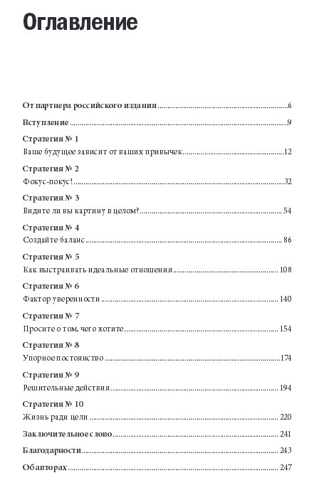 Отличная книга, которая сочетает в себе и теорию и практику. После каждой главы имеется ряд упражнений обязательных к выполнению. И что самое удивительное - они помогают значительно улучшать вашу жизнь. Который раз убеждаюсь, что для достижения значительных целей в жизни необходим план действий, в этой книге даётся ряд действенных упражнений по написанию этого плана, пример генерального плана в книге наглядно показывает как он должен выглядеть. Советую всем от мала до велика! =)