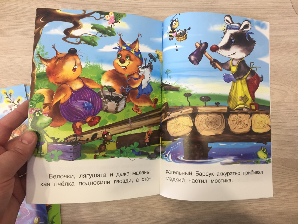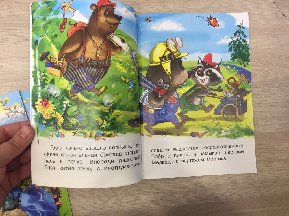 Потрясающие книги. Взяла такие 4 штуки. Каждая книга яркая, очень красочная. Большая. Рассказ короткий. Ребёнок не устанет слушать. Текст понятный. Шрифт крупный. И сами рассказы интересные и добрые.
