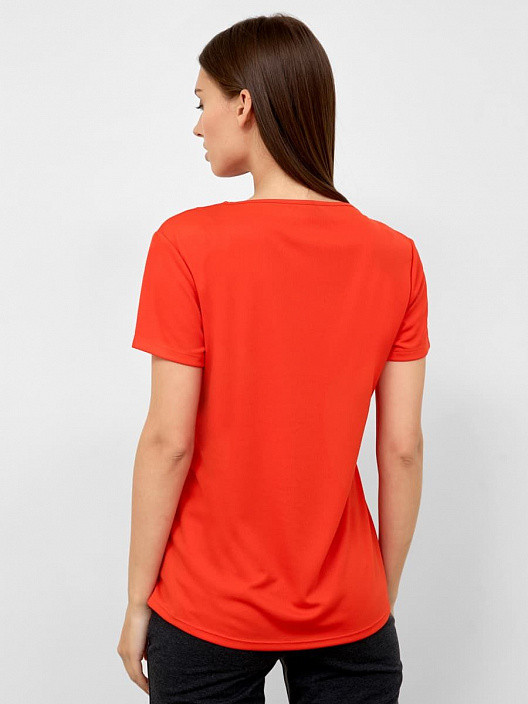 Футболка идёт в размер. Материал приятный, дышащий, похож на вискозу. Вещи из синтетики я не люблю - предпочитаю натуральные ткани - а тут вещь приятно удивила. Летом тело будет дышать. Рекомендую к приобретению