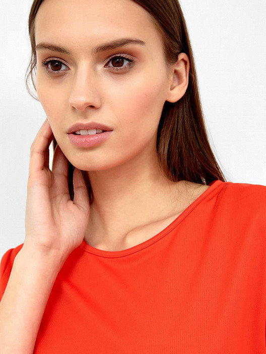 Футболка идёт в размер. Материал приятный, дышащий, похож на вискозу. Вещи из синтетики я не люблю - предпочитаю натуральные ткани - а тут вещь приятно удивила. Летом тело будет дышать. Рекомендую к приобретению