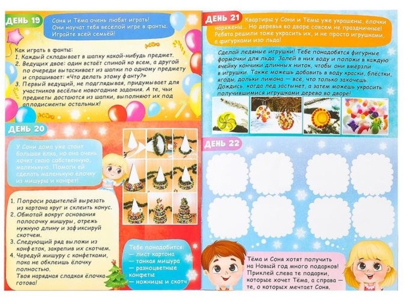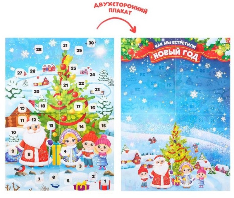 Яркий, красочный адвент! Много разнообразных заданий на каждый день месяца. Внутри плакат и наклейки. Формат А5