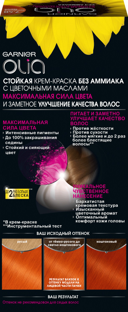 Garnier Стойкая крем-краска для волос «Olia» с цветочными маслами без аммиака, оттенок 7.40 Искрящийся медный
