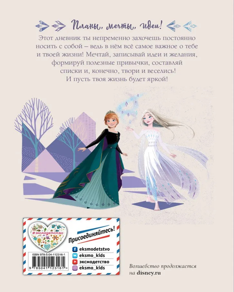 Дневник моих планов и идей «Холодное сердце 2»В данный момент этот товар отсутствует в продаже. Возможно, у нас найдется аналогичный или похожий товар здесь. Серия: Холодное сердце 2. Волшебные дневники Этот дневничок — целая сокровищница! Ведь в нём всё самое важное для тебя — планы, желания, гениальные идеи и сокровенные тайны. Вдохновляйся, мечтай, твори и проводи весело и интересно время каждый день. А потрясающие иллюстрации и герои твоего любимого мультфильма «Холодное сердце 2» точно не дадут тебе скучать! |
