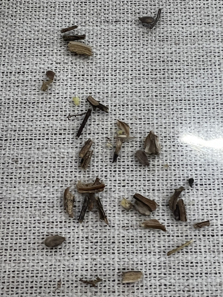 Внутри оказались комки из слипшихся, заплесневелых семян