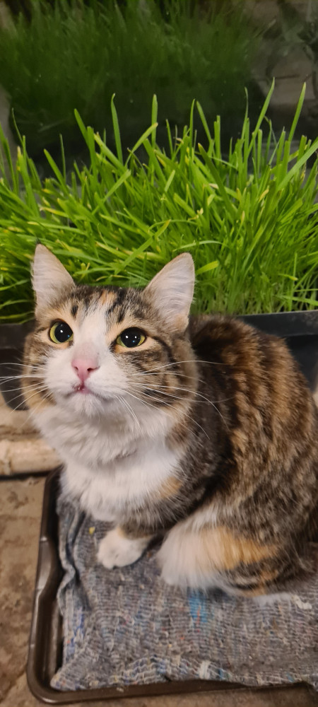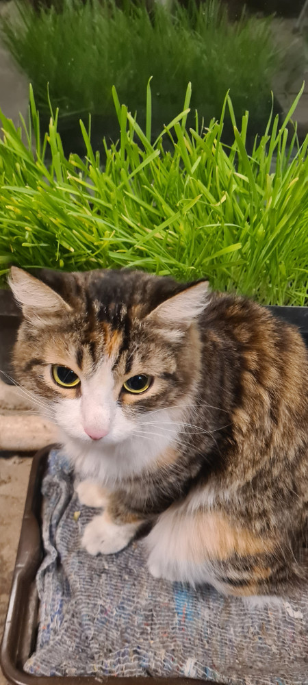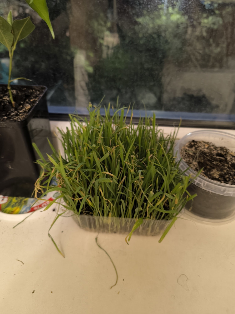 Сею для кошки. Ест с удовольствием. Дружно всходят семена. Травка получается сочной и упругой. На фото уже перезревшая, забыла сделать фото в первые дни.
