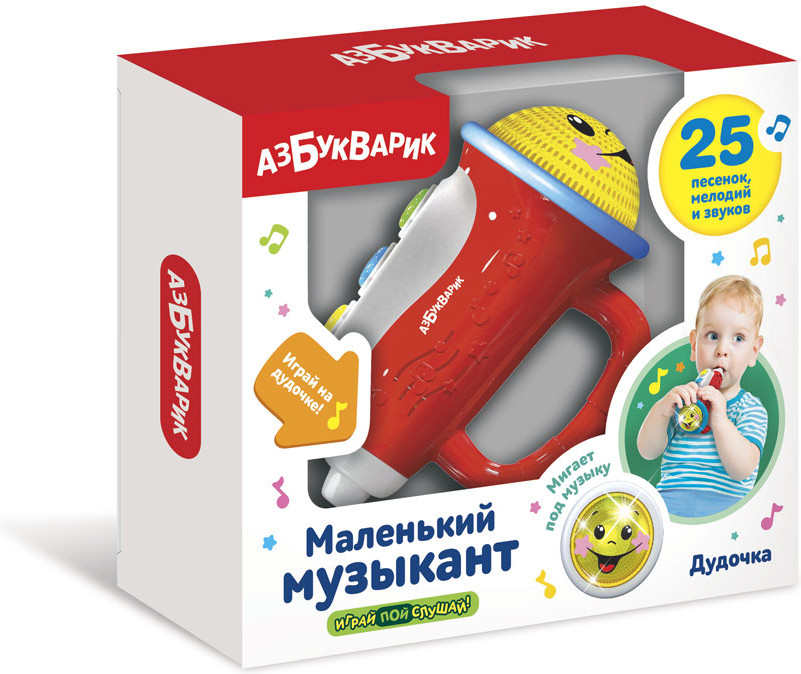 💳 Оплатить за товар можно при получении 🇰🇿 Есть бесплатная доставка по Казахстану от 1 дня 🎁 Копите бонусы с каждой покупки Серия: Маленький музыкант Яркая игрушечная дудочка подарит малышу отличное настроение и поможет ему раскрыть музыкальный талант! Нажимай на кнопочки — слушай 25 песенок, мелодий и звуков ( «Раным-рано поутру», «Сидит ворон на дубу», «Я на горку шла», «Танец зверят», «Каравай», «Как у нашего кота», «Ладушки», «Тень-тень, потетень» и др.). Во время звучания песенок и мелодий мигает огонек. А еще можно поиграть на дудочке под музыку (для этого нужно просто подудеть). Получится настоящий концерт! |
