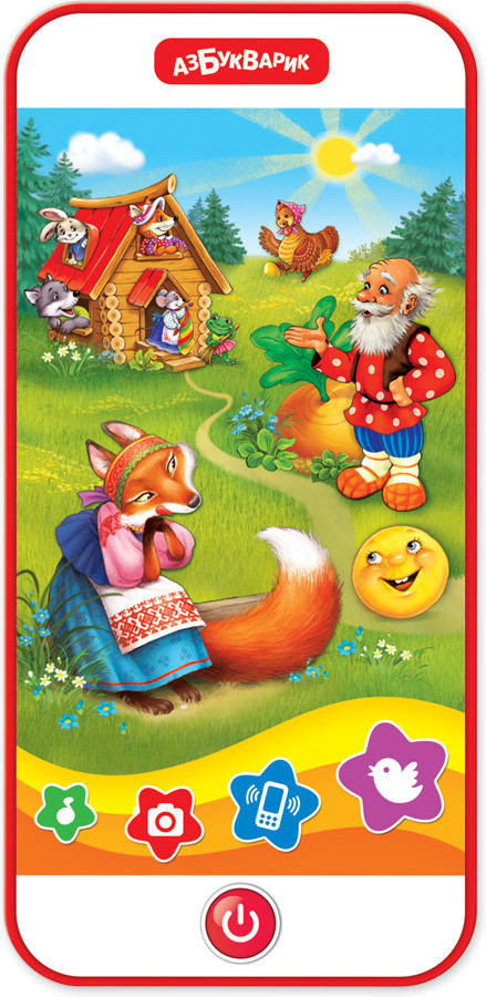 Телефон пришел целый,сказку рассказывают интересно) песенки тоже хорошие) Ребенку 9 месяцев понравилось) Только жаль что не мигает какая-нибудь кнопочка, ребенку было бы интересней)) Можно по QR коду скачать детское караоке это тоже плюс))