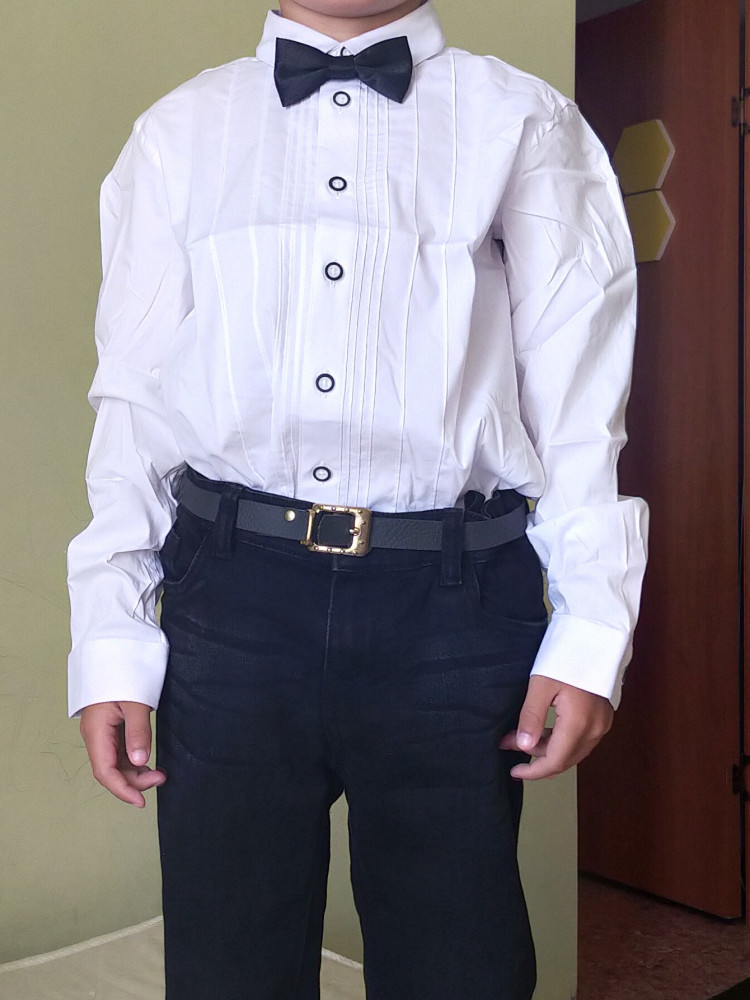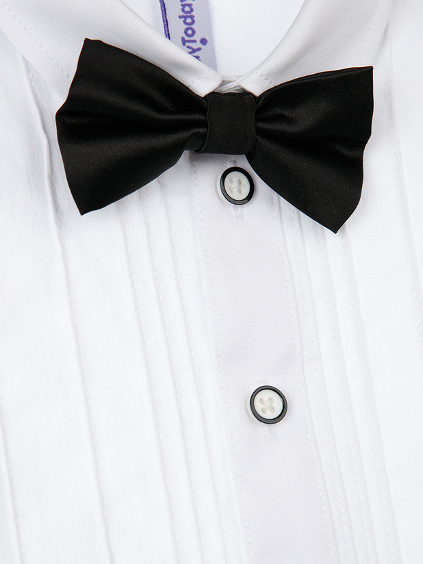 Классическая фактурная рубашка с длинным рукавом для мальчиков. Модель дополнена трендовым отложным воротником button-down, застёгивается на пуговицы, декоративная планка. Белая рубашка может стать как базовым элементом гардероба, так и создать праздничный образ для торжественного мероприятия в дополнении с контрастного цвета бабочкой, которая идёт в комплекте.