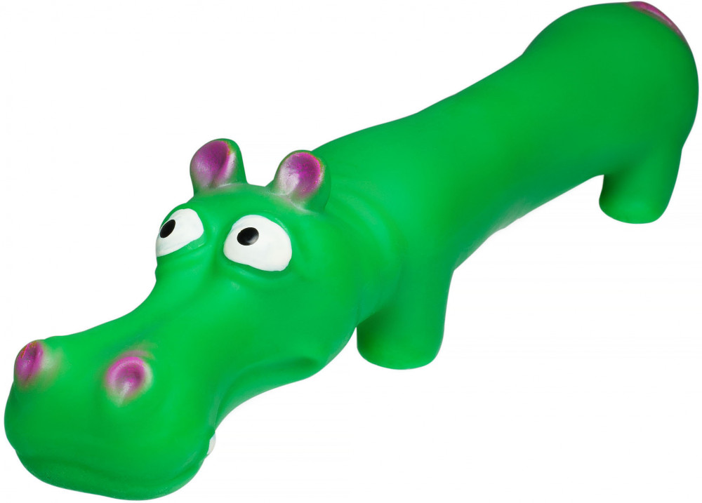 Игрушка очень хорошая, собаке удобно носить в зубах, крепкий, выдержал уже месяц активного "играния". Нам пришел зеленый бегемот. Рекомендую