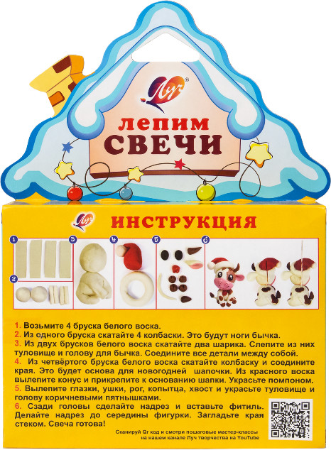 Луч Набор для лепки свечей «Бычок»В данный момент этот товар отсутствует в продаже. Возможно, у нас найдется аналогичный или похожий товар здесь. Серия: Лепим свечи Предлагаем вашему вниманию замечательную линейку подарочных наборов для лепки свечей из мягкого воска. Красочная коробочка с подвесом в виде домика, милые образы персонажей с упаковки, популярные у детей, — всё сделано для того, чтобы поднять покупателям настроение и привнести атмосферу предстоящего новогоднего праздника. Внутри каждого набора находятся разноцветные кусочки мягкого воска, фитиль и стек, чтобы ребёнок мог слепить свечу, изображенную на лицевой части коробочки. Как слепить свечу, показано на обратной стороне упаковки. |