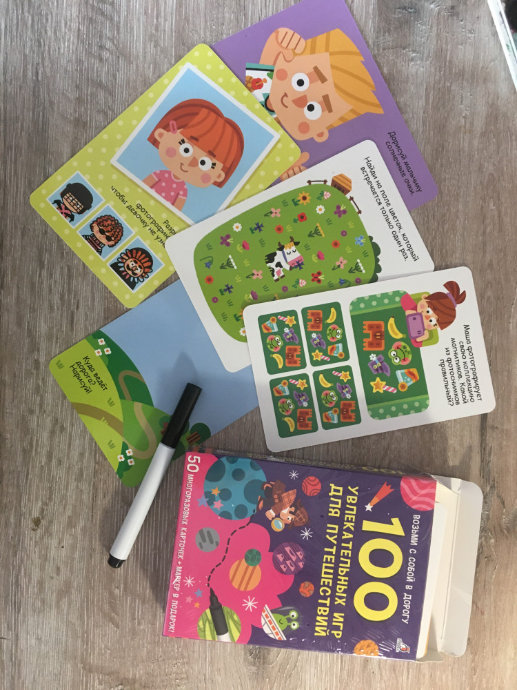 💳 Оплатить за товар можно при получении 🇰🇿 Есть бесплатная доставка по Казахстану от 1 дня 🎁 Копите бонусы с каждой покупки Серия: Возьми с собой в дорогу В набор входят 50 двухсторонних многоразовых карточек с заданиями на логику, внимательность, сообразительность, а также много других увлекательных игр для развития важных навыков у детей. |