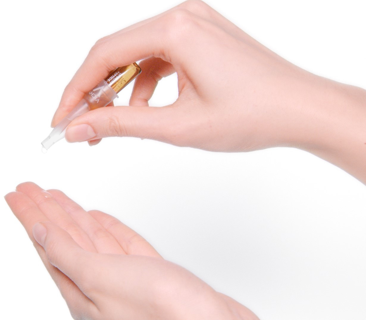 Способ применения: встряхните ампулу, чтобы содержимое оказалось внизу. Разломите ампулу двумя руками, используя салфетку. Наденьте аппликатор на ампулу до конца. На пластиковом аппликаторе поверните и отломите колпачок, отложите его в сторону. Переверните ампулу вниз и аккуратно потрясите. Надавите на аппликатор и выдавите половину ампулы в ладонь. Нанесите содержимое ампулы на шею и лицо, избегая линии роста ресниц. Не снимая аппликатор, закройте остаток ампулы пластиковым колпачком, чтобы сохранить содержимое для следующего нанесения. После полного впитывания (примерно 30 сек.) нанесите ваш обычный крем или сыворотку. |