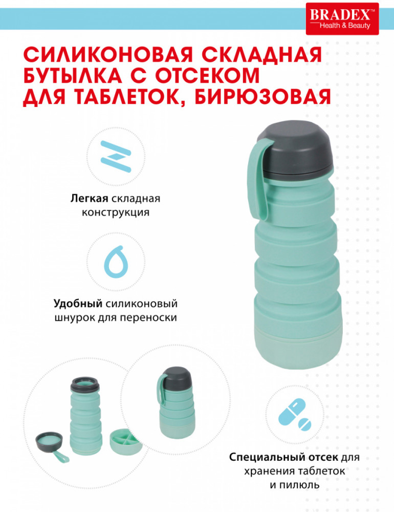 Bradex Бутылка для воды складная с отсеком для таблеток
