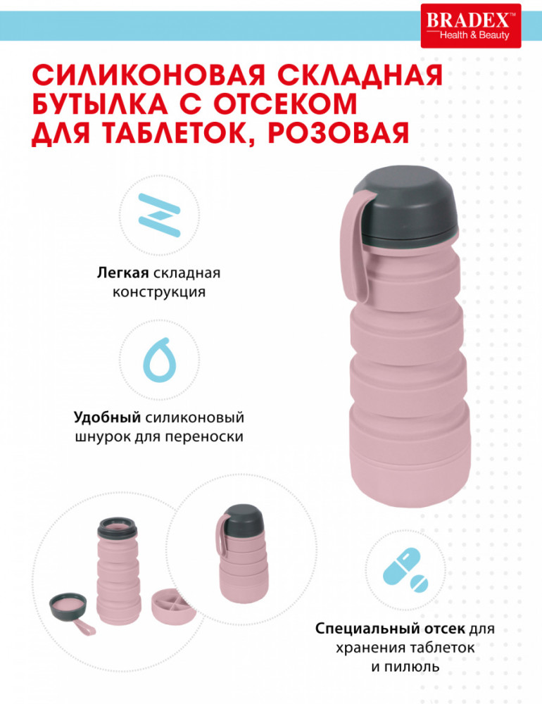 Bradex Бутылка для воды складная с отсеком для таблеток