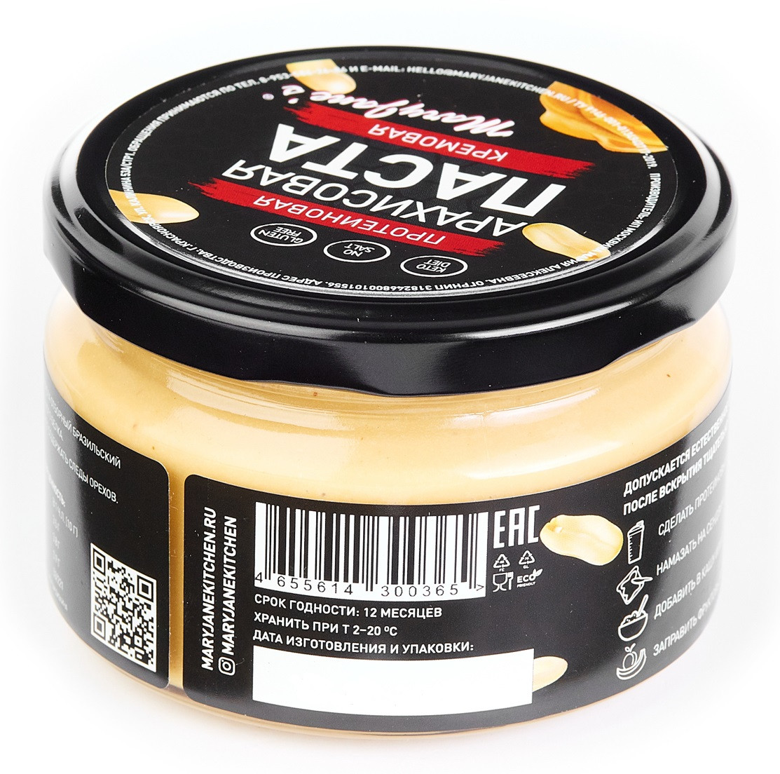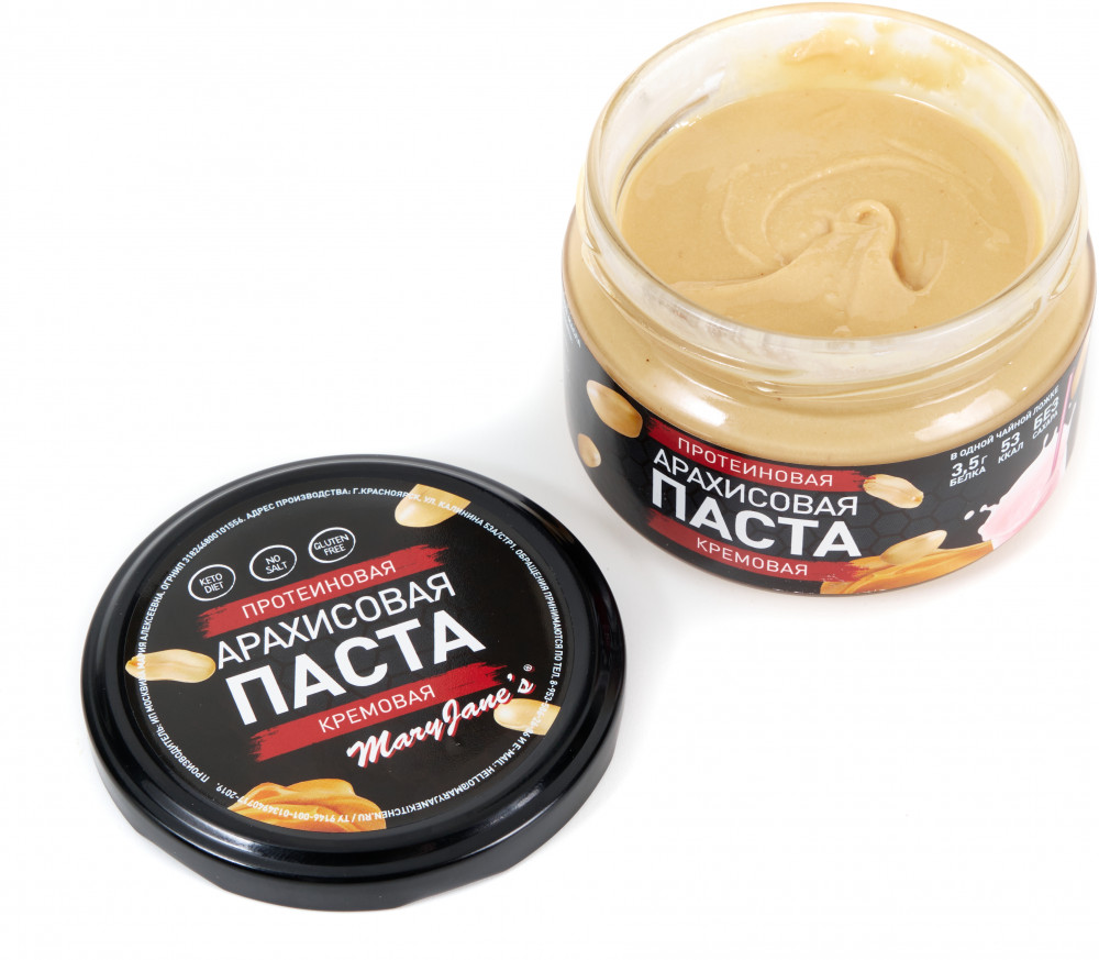 | Арахисовая паста Mary Jane’s Kitchen — без консервантов, наполнителей, подсластителей, эмульгаторов и других добавок или промышленных хитростей, имеет нежно-кремовую консистенцию и восхитительный натуральный вкус! Паста производится в Красноярске малыми партиями, только из свежих поставок сладких сортов арахиса, только из цельных орехов лучшего качества. |