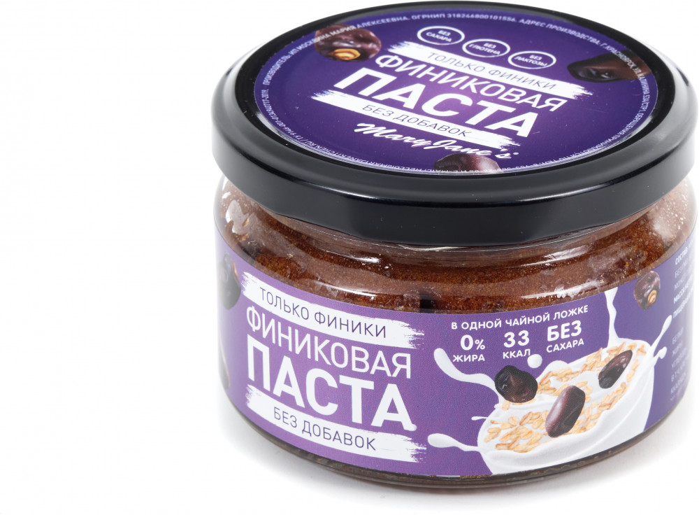 Паста прямо скажу на любителя,нет ярко выраженного вкуса фиников,твёрдая и даже слишком- не намазать никак! По мне так лучше на эти деньги купить 1кг. фиников и употребить тот же натуральный продукт!