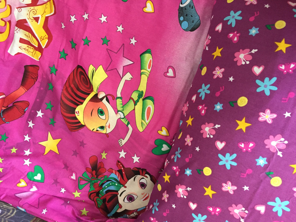 Замечательное постельное с любимыми героями 👍 Купили дочке на день рождение , визгу было море. Никакого брака, все качественно прокрашено. Надеюсь будет долго "жить" и радовать свою хозяйку.