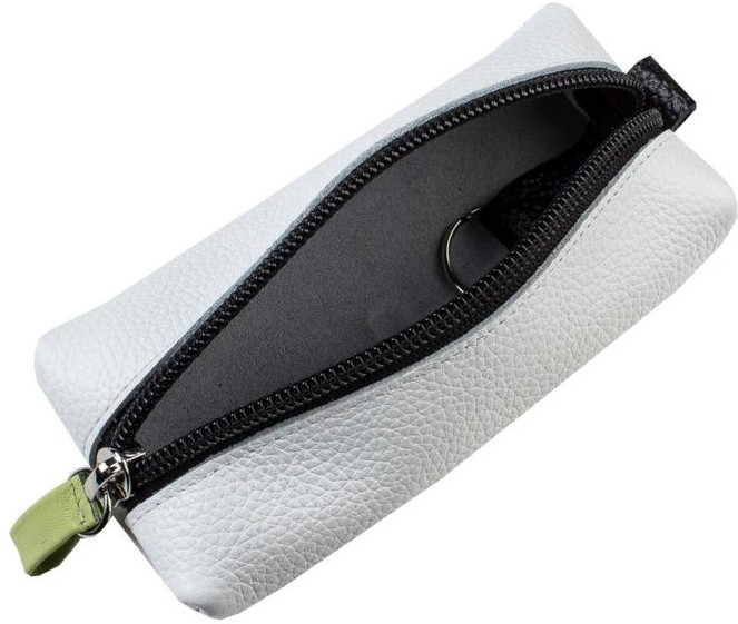 Ключница из натуральной кожи с изящным украшением, закрывается на молнию, внутри кольцо для ключей, с задней стороны вместительный кармашек на молнии.