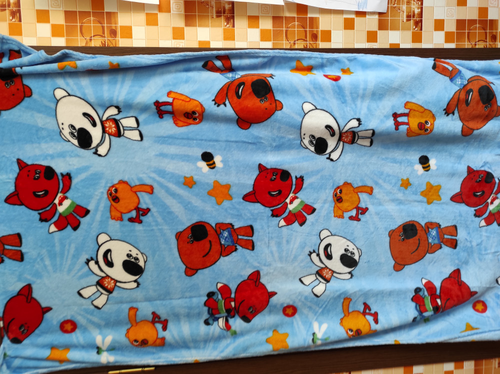 Купила плед сыну - нравятся ему эти персонажи. Красочный, мягкий, тонкий. Сшит криво-косо. Что с ним будет после стирки - неизвестно.